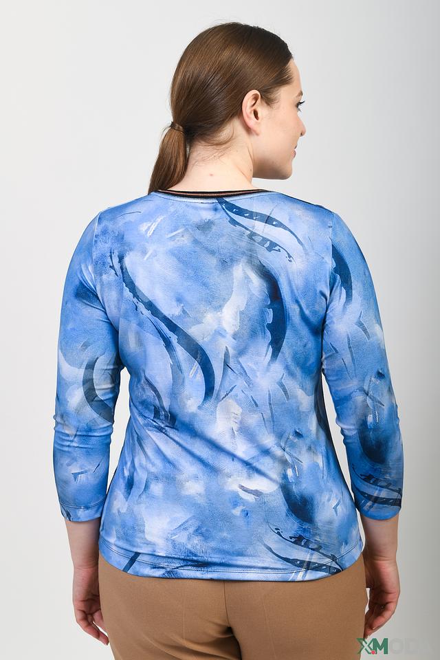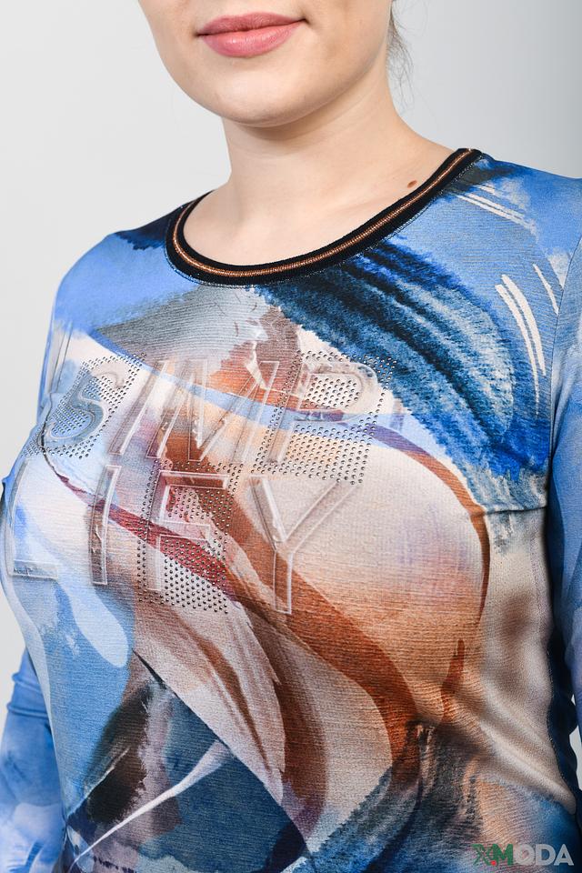 Женская футболка Rabe collection голубого цвета с оригинальным принтом и рукавом 3/4. Изготовлена из мягкой вискозы с добавлением эластана для комфорта и хорошей посадки. Состав: вискоза 92%, эластан 8%