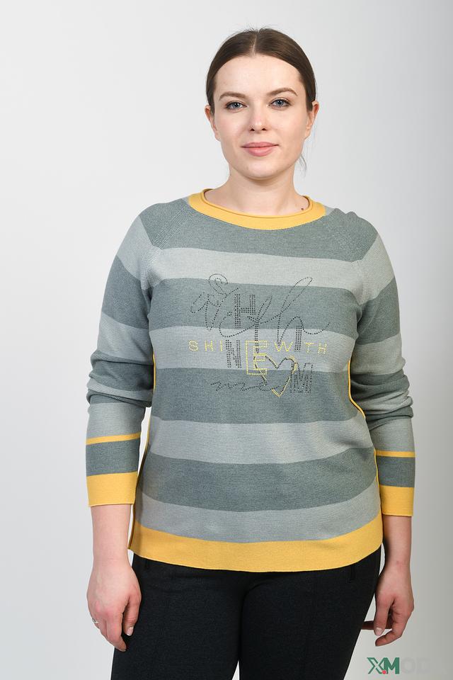 Женский пуловер Rabe collection серого цвета с полоской и декоративной вышивкой. Модель выполнена из мягкого и приятного к телу трикотажа, идеально подходит для создания повседневных образов. Состав: модал 46%, полиакрил 40%, полиамид 14%