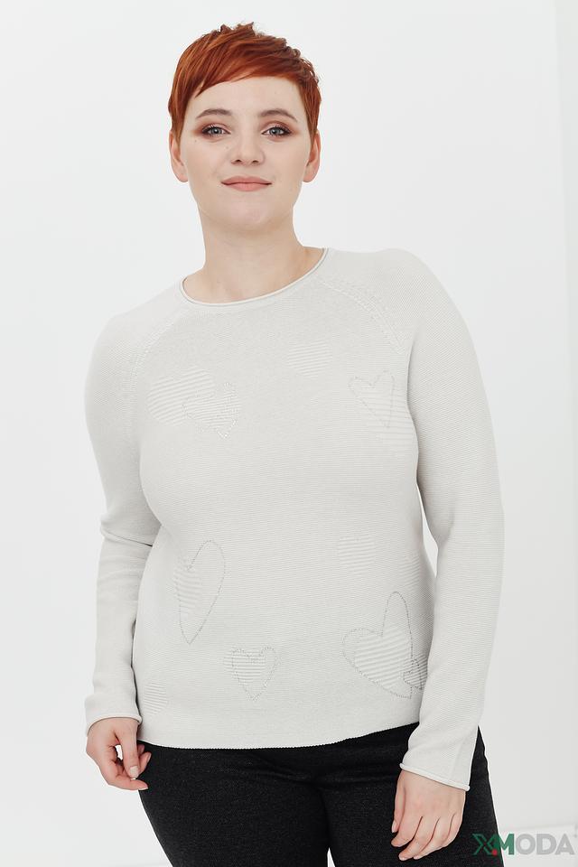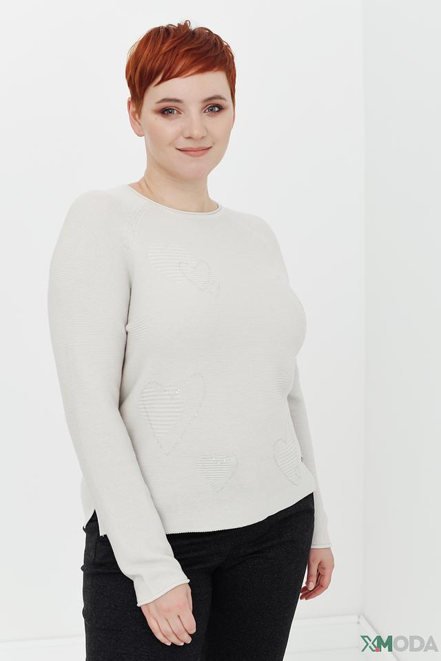 Особенностью данного пуловера является деликатный узор в виде небольших сердец, которые придают изделию романтичный и нежный вид. Пуловер изготовлен из высококачественного материала, сочетающего в себе 50% хлопка и 50% полиакрила.