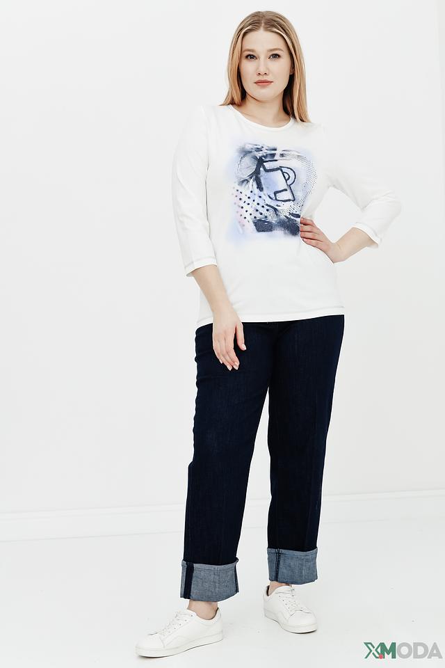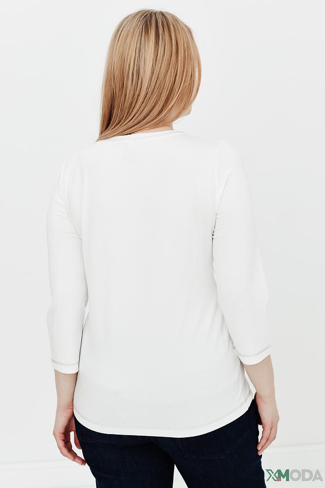 Белый лонгслив от Rabe collection с оригинальным принтом в виде лица, выполнен из мягкой вискозы с добавлением эластана. Удобный крой и ¾ рукав делают эту модель идеальной для создания повседневных образов. Состав: вискоза 92%, эластан 8%
