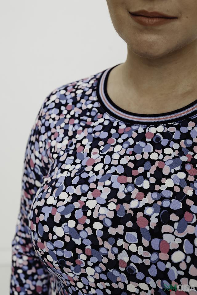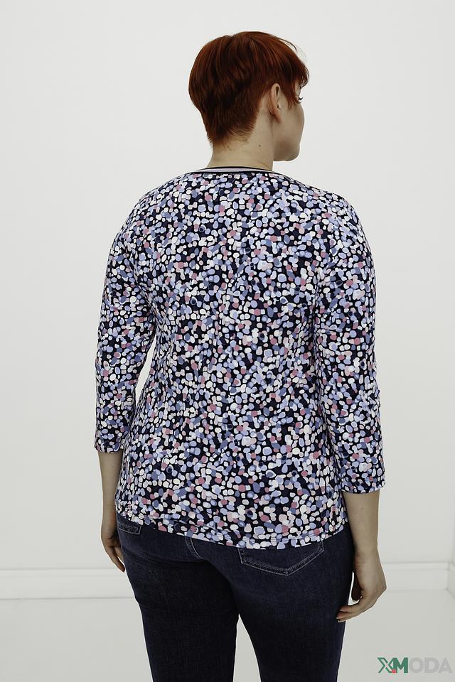 Женская блуза Rabe collection темно-синего цвета с ярким цветочным принтом. Модель выполнена из мягкой вискозы с добавлением эластана, что обеспечивает комфорт и хорошую посадку по фигуре. Состав: вискоза 92%, эластан 8%