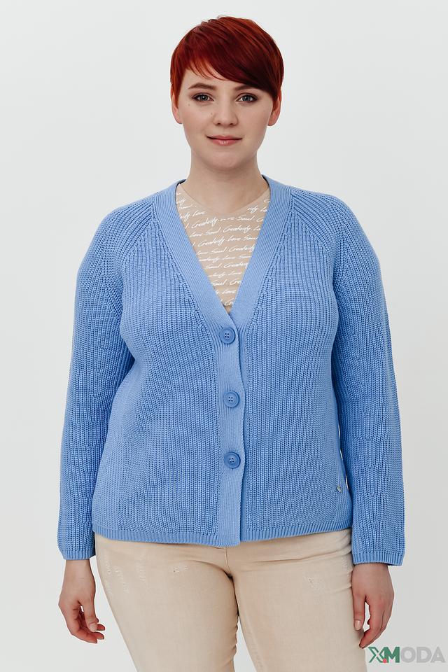 Этот кардиган от Rabe collection станет отличным дополнением к вашему гардеробу. Он выполнен в нежном голубом цвете и имеет классический крой с V-образным вырезом.