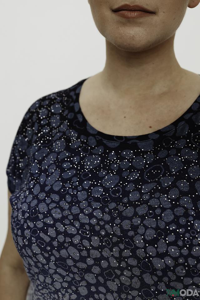 Блуза имеет круглый вырез горловины и короткие рукава, что делает ее идеальным выбором для теплой погоды. Она выполнена из высококачественного материала – 50% хлопка и 50% модала, который отличается мягкостью, приятностью на ощупь и хорошей воздухопроницаемостью.