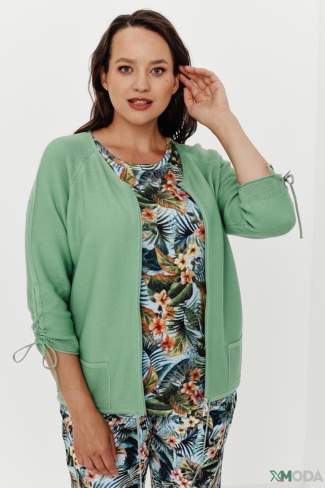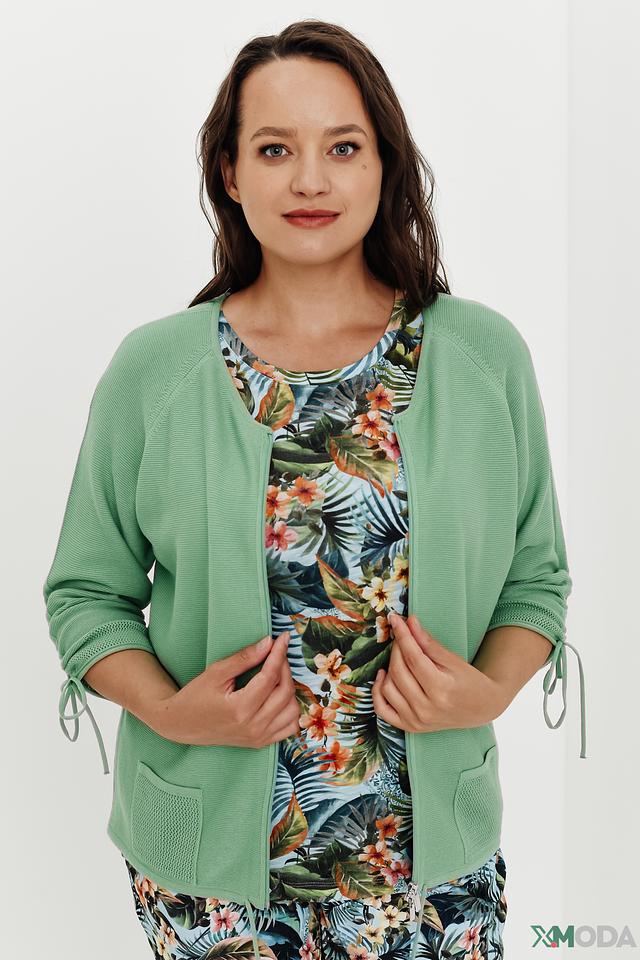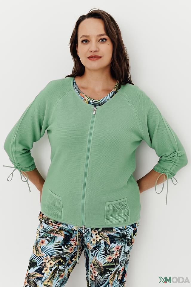 Жакет Rabe collection мятного цвета – это стильная и удобная модель с застежкой на молнию и рукавами 3/4. Жакет имеет карманы и завязки по бокам, что придает ему оригинальный вид. Состав: хлопок 50%, полиакрил 50%