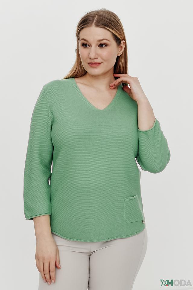 Женский пуловер Rabe collection мятного цвета с V-образным вырезом и рукавами 3/4. Изготовлен из мягкого трикотажа с текстурной вязкой и имеет удобный карман на груди. Состав: хлопок 50%, полиакрил 50%