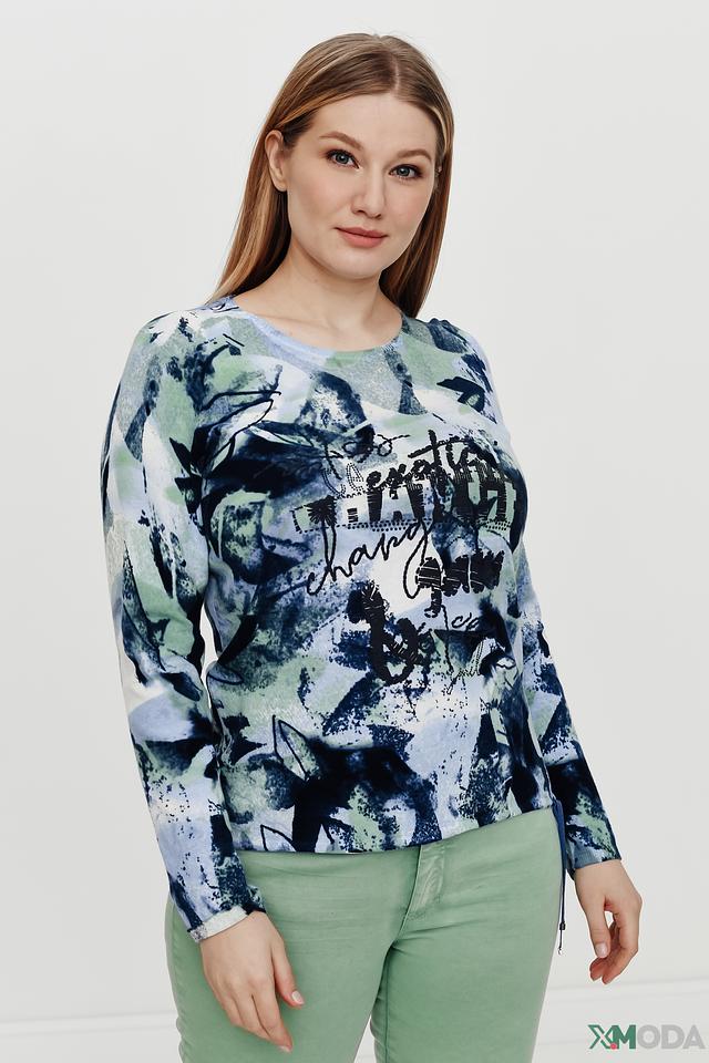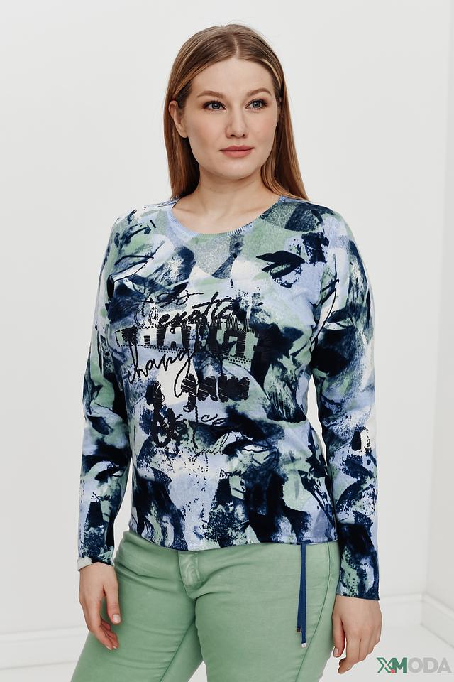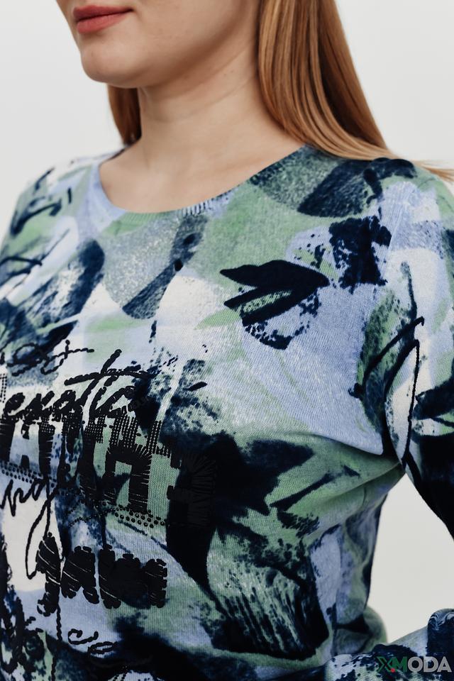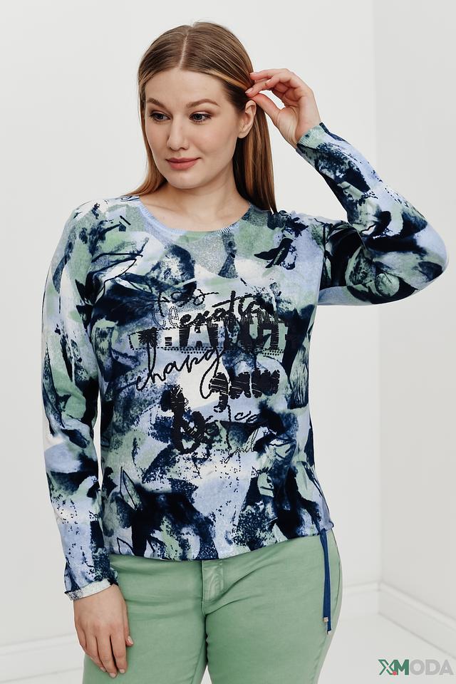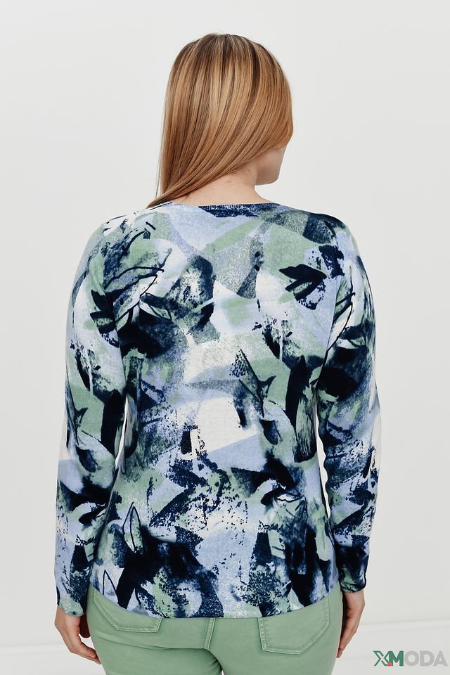Модель имеет свободный крой и длинные рукава, что обеспечивает свободу движений. Пуловер украшен ярким и необычным принтом, который добавляет образу оригинальности и индивидуальности.