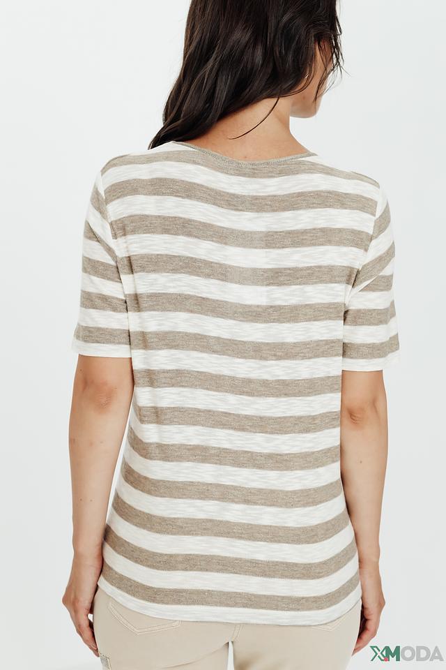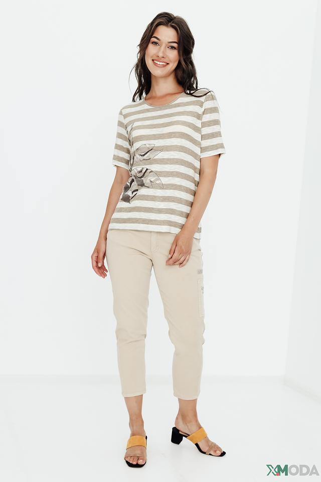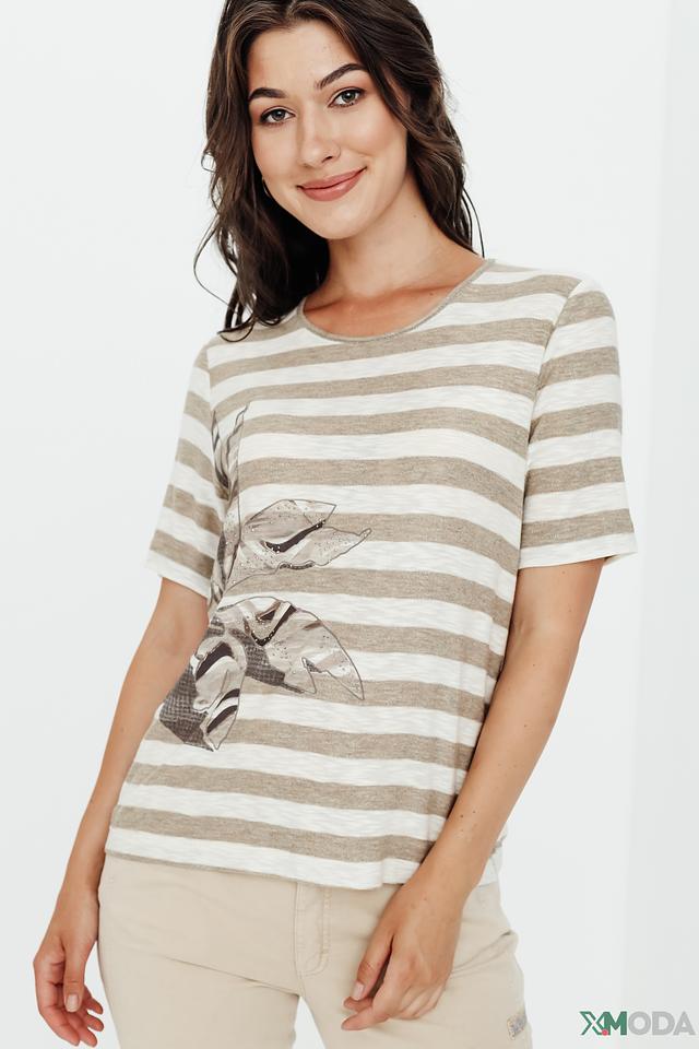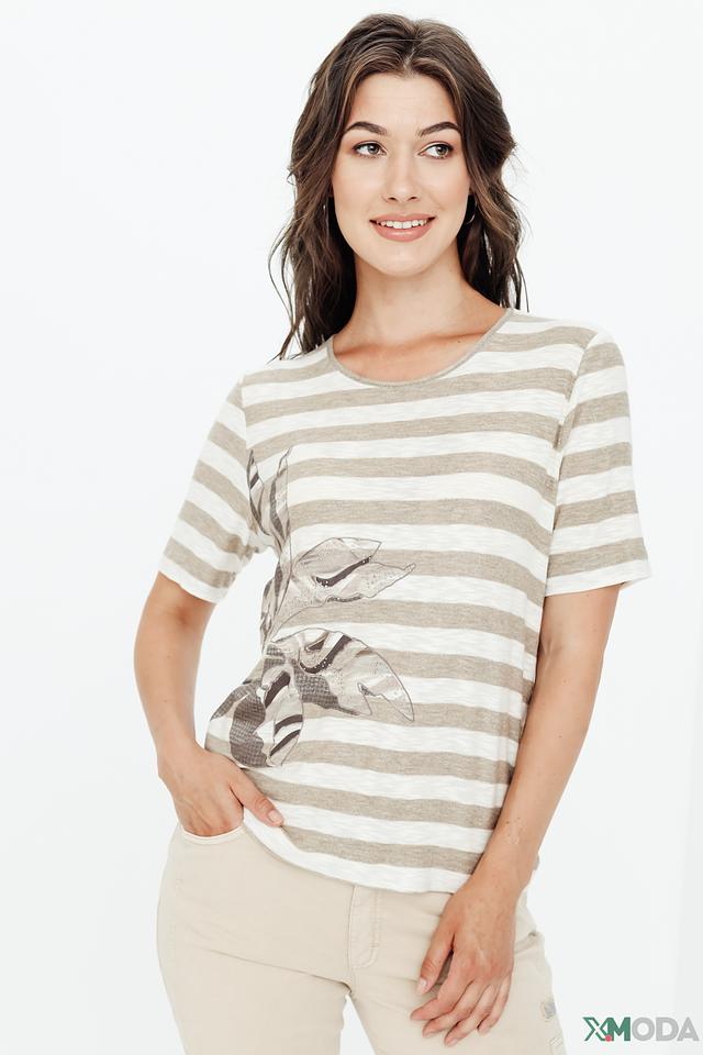 Женский пуловер Rabe collection бежевого цвета с короткими рукавами и оригинальным цветочным принтом. Модель выполнена в полоску и станет отличным дополнением к вашему гардеробу. Состав: вискоза 92%, эластан 8%