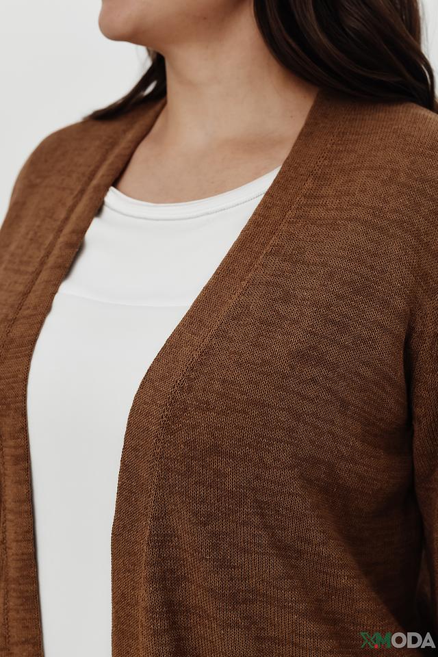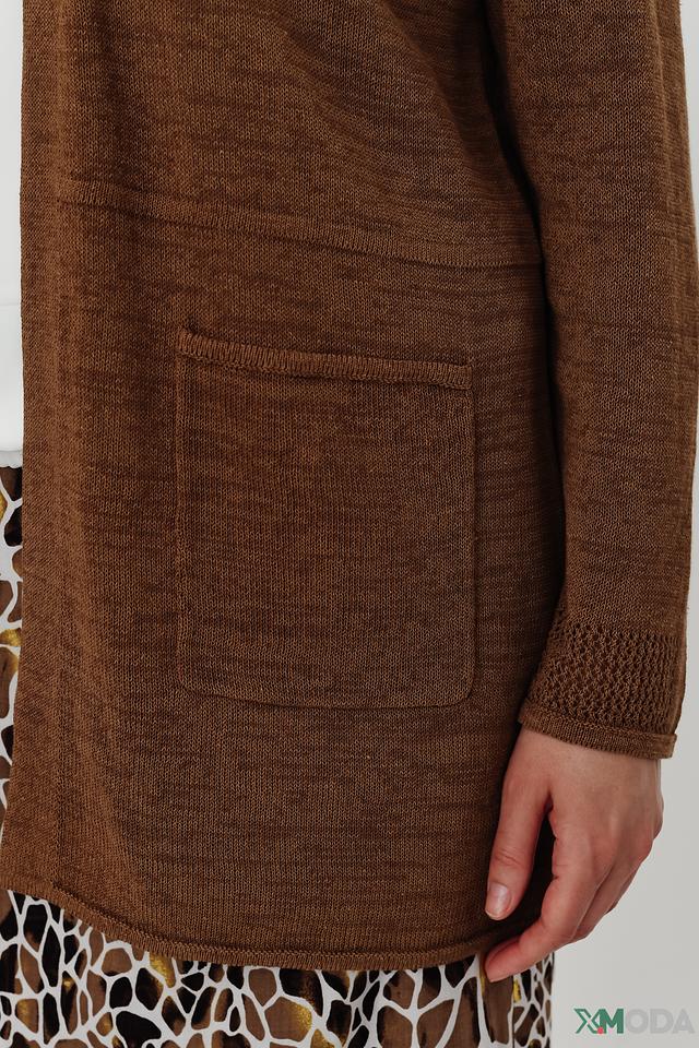 Коричневый кардиган от Rabe collection – это удобная и стильная модель с V-образным вырезом и накладными карманами. Идеально дополнит повседневный образ, обеспечивая комфорт и тепло. Состав: хлопок 61%, лен 21%, полиамид 18%