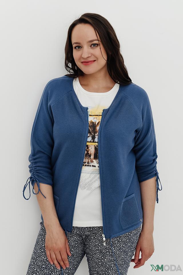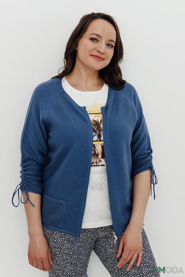 Синий жакет от Rabe collection – это удобная и стильная модель с 3/4 рукавом и завязками. Жакет имеет застежку-молнию и функциональные карманы, что делает его практичным дополнением к вашему гардеробу. Состав: хлопок 50%, полиакрил 50%