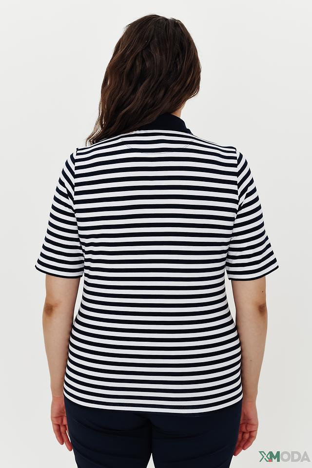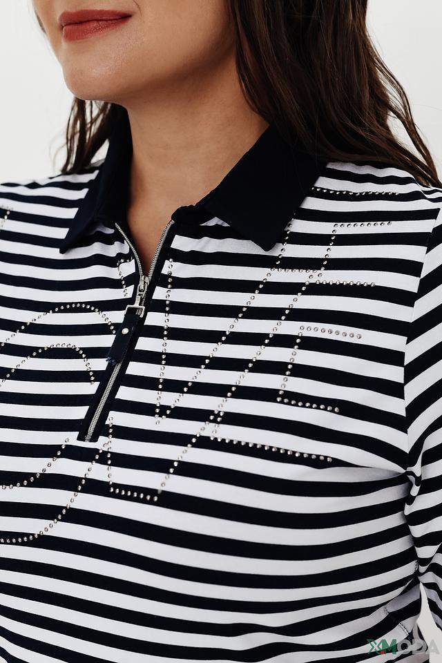 Женское поло Rabe collection выполнено в классической чёрно-белой полоску и дополнено молнией. Модель из мягкой вискозы с добавлением эластана обеспечит комфорт и свободу движений. Состав: вискоза 96%, эластан 4%