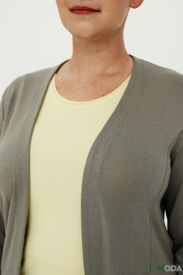 Этот женский кардиган от Rabe collection выполнен в спокойном хаки цвете и станет отличным дополнением к вашему гардеробу. Модель имеет открытый крой, что делает ее легкой и удобной в носке.