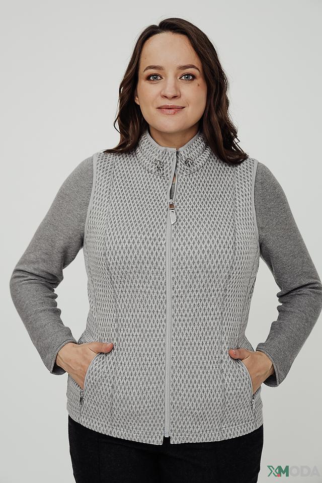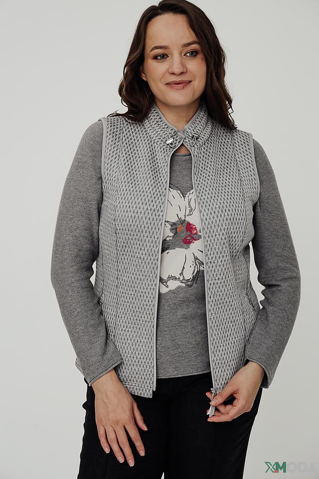 Серый жилет от Rabe collection с геометрическим узором – стильное и практичное решение для создания многослойных образов. Застежка-молния и боковые карманы обеспечивают удобство и функциональность. Состав: полиэстер 82%, вискоза 15%, эластан 3%