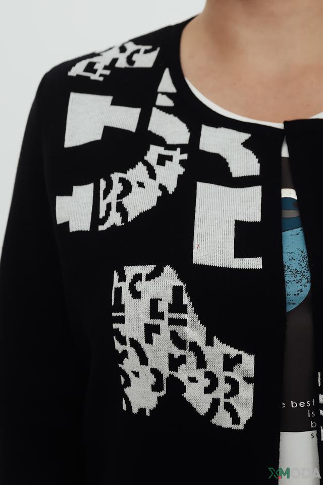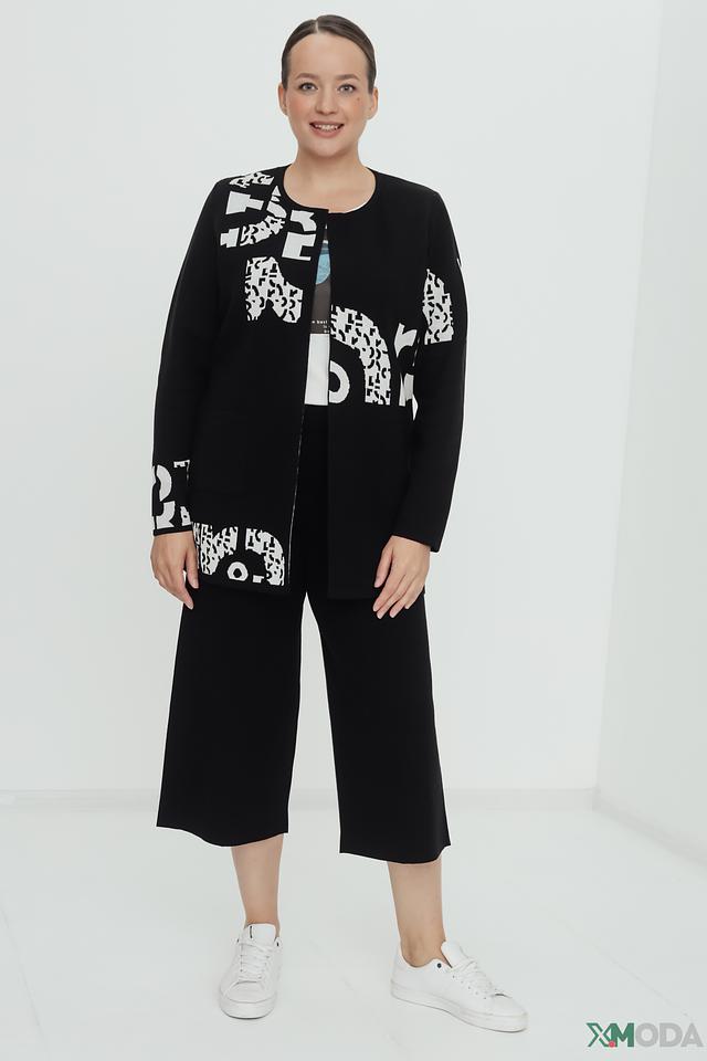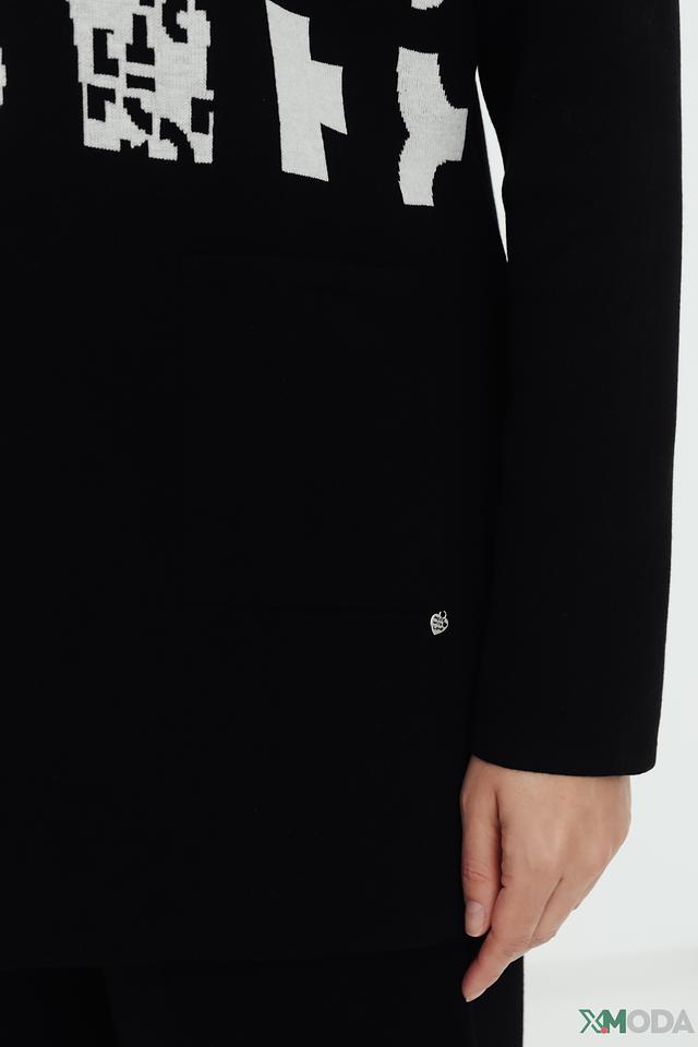 Чёрный жакет от Rabe collection с оригинальным геометрическим принтом. Модель свободного кроя без застежки, идеально дополнит повседневный образ. Изготовлен из мягкого трикотажа. Состав: хлопок 43%, полиакрил 43%, полиамид 14%