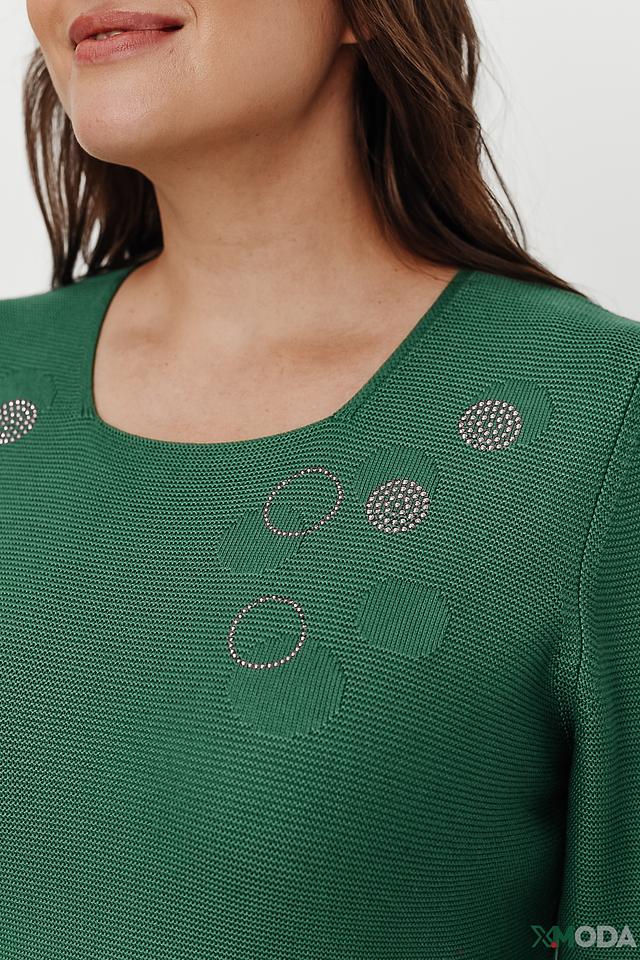 Модель имеет округлый вырез горловины и длинные рукава. Передняя часть пуловера украшена декоративной вышивкой в виде небольших кругов, что придает ему оригинальность и изысканность.