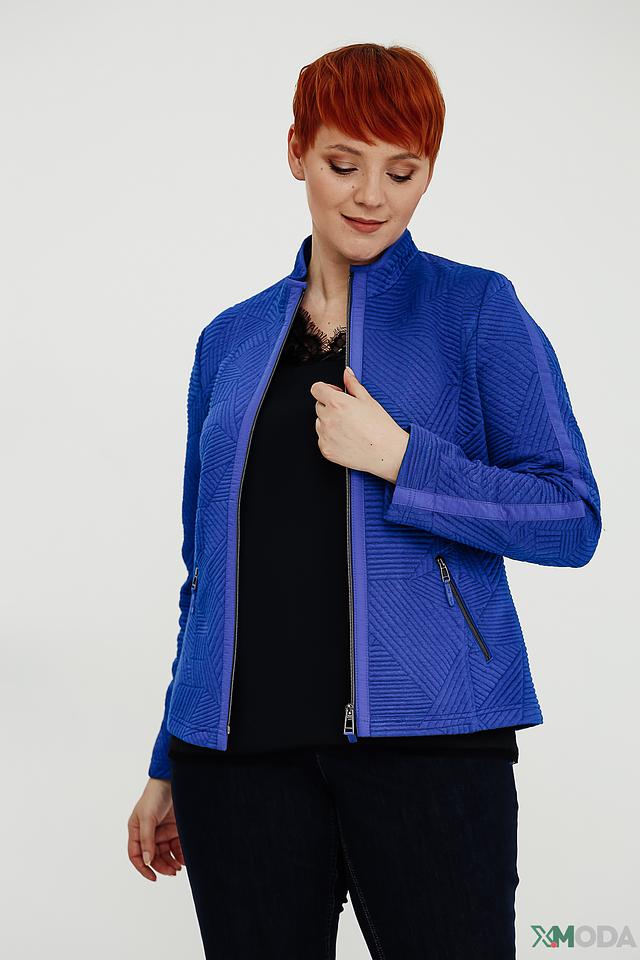 Синий жакет от Rabe collection – стильная и удобная модель с геометрическим стеганым узором. Застежка на молнию, боковые карманы и воротник-стойка делают этот жакет практичным и универсальным дополнением к вашему гардеробу. Состав: полиэстер 72%, вискоза 23%, эластан 5%