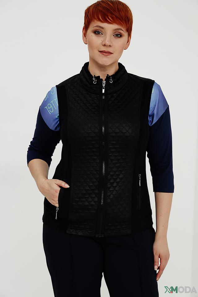 Стильный жилет Rabe collection черного цвета с оригинальным дизайном и стеганой фактурой. Модель дополнена вставками из ткани с принтом и имеет удобную застежку-молнию. Состав: полиэстер 100%