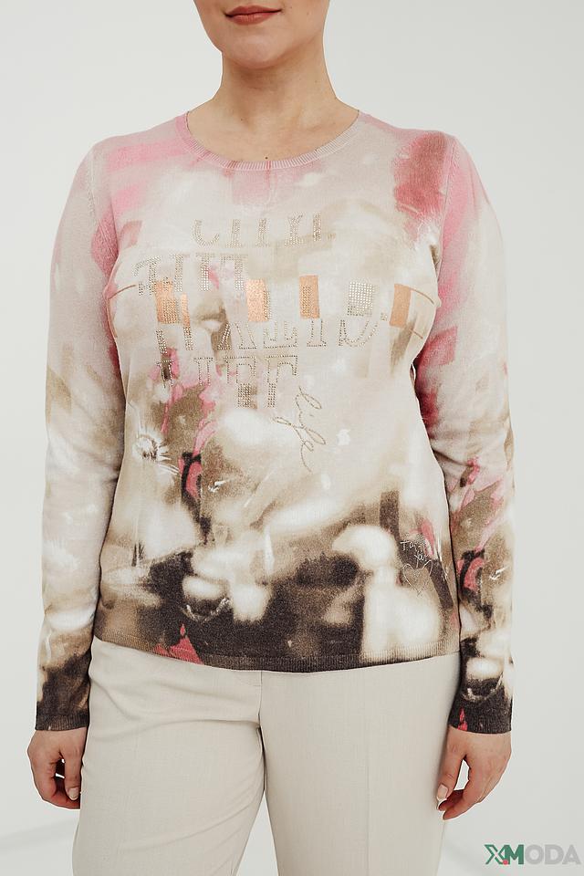 Этот стильный пуловер от Rabe collection выполнен в нежно-розовой цветовой гамме и украшен ярким, абстрактным принтом. Модель имеет удобный круглый вырез горловины и длинные рукава, обеспечивающие комфорт в прохладную погоду.