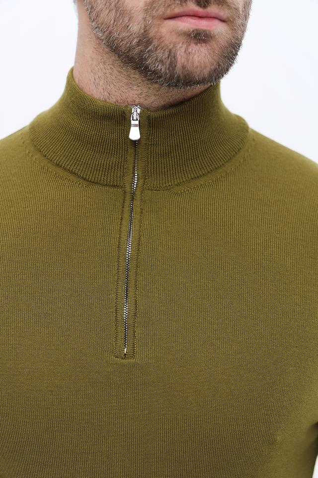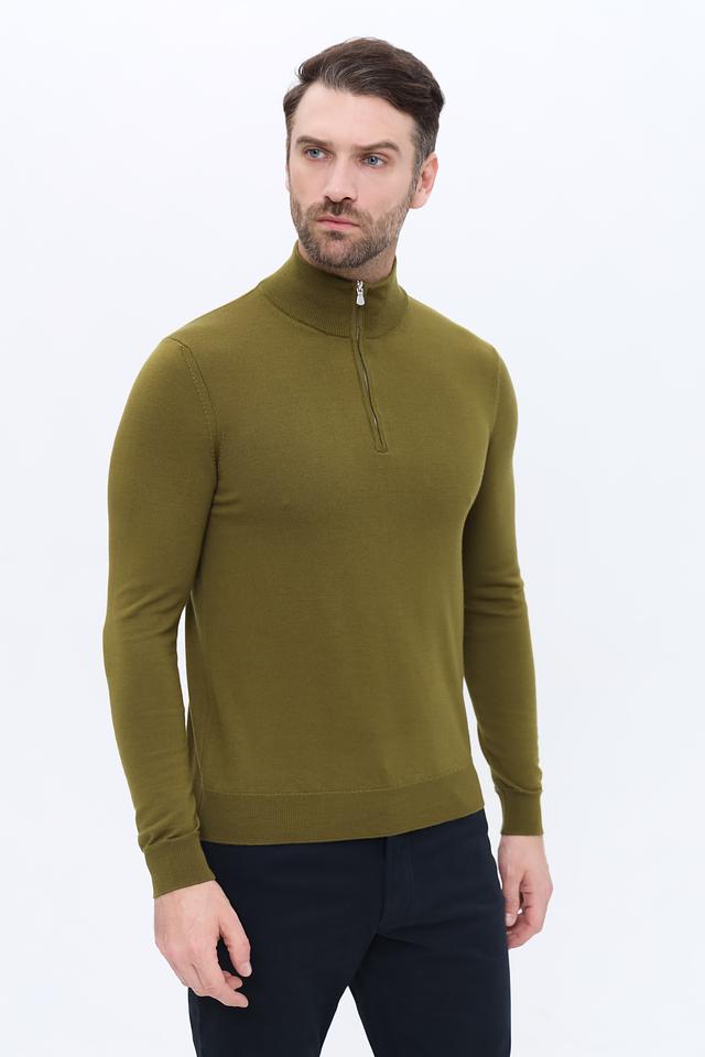 Мужской джемпер Radi Perugia оливкового цвета с короткой молнией на воротнике. Изготовлен из 100% шерсти, обеспечивающей комфорт и тепло. Классический крой и лаконичный дизайн делают этот джемпер универсальным элементом гардероба. Состав: шерсть 100%
