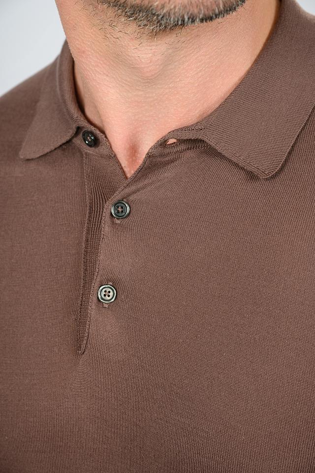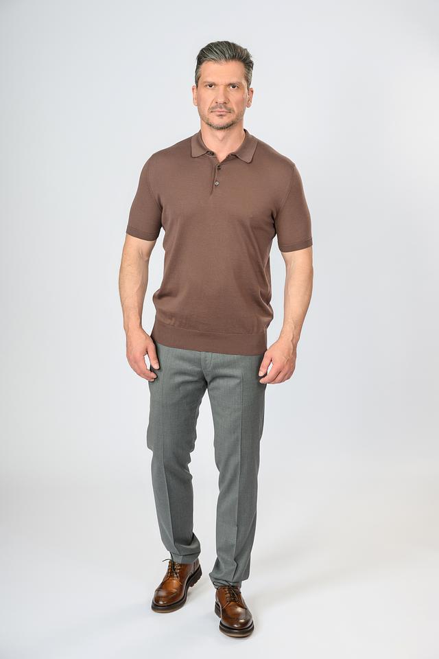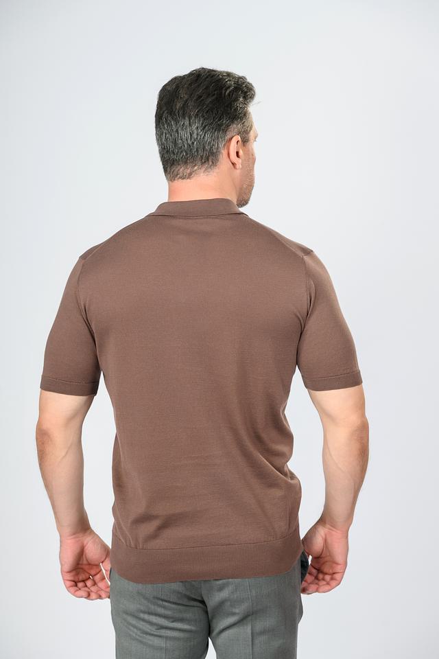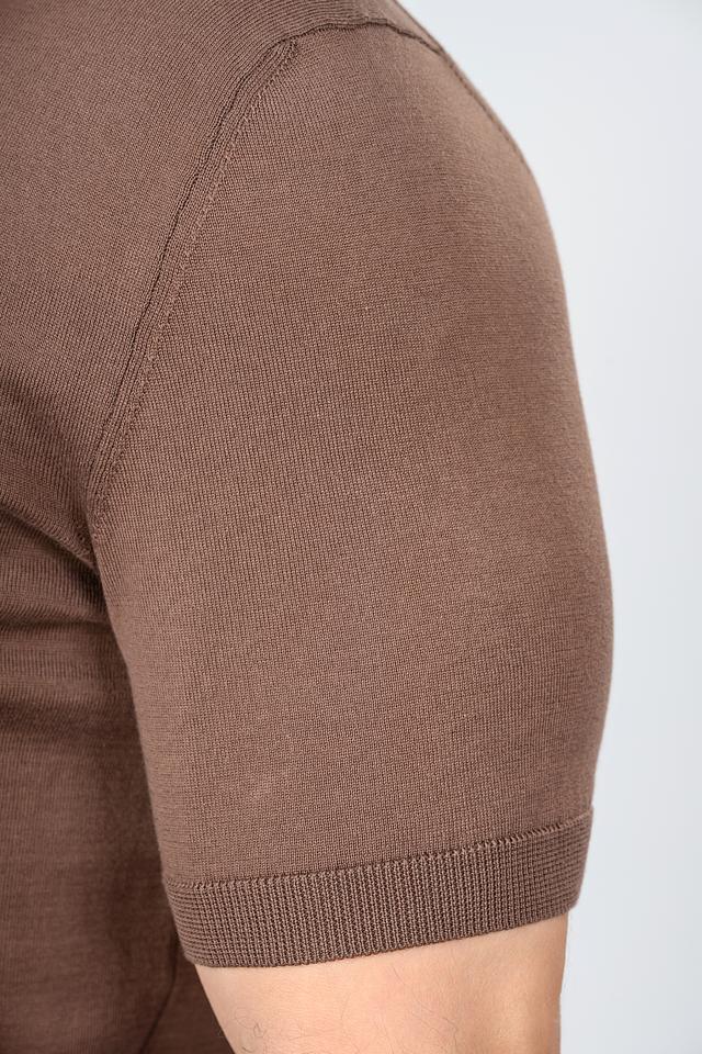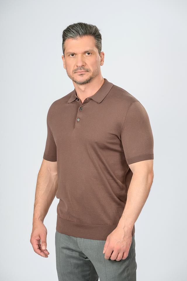 Классический крой поло идеально подходит для создания различных образов – от повседневных до более формальных. Коричневый цвет добавляет образу элегантности и сдержанности.