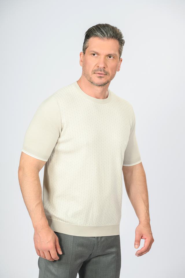 Модель имеет короткий рукав и круглый вырез горловины, что делает ее универсальной для различных стилей одежды. Текстурная вязка добавляет изделию изысканности и оригинальности.