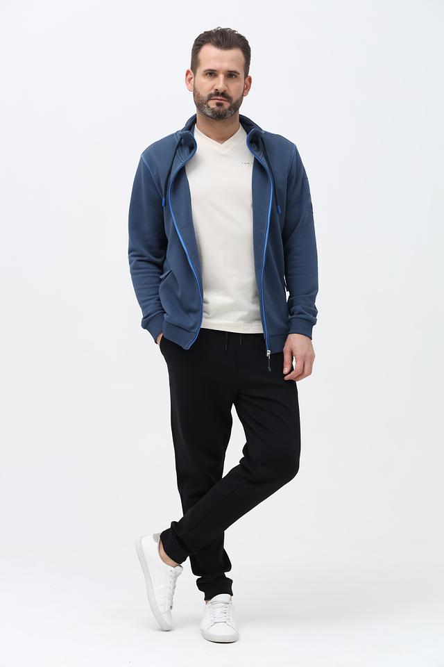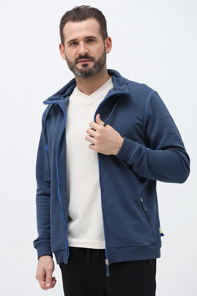 Мужской кардиган от Ragman выполнен в насыщенном синем цвете. Модель застегивается на молнию, имеет капюшон со шнурками для регулировки. Кардиган имеет два боковых кармана на молнии, что делает его функциональным и удобным для хранения мелочей.