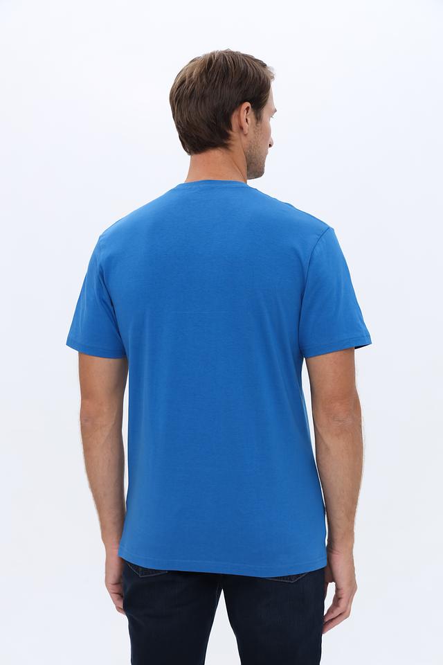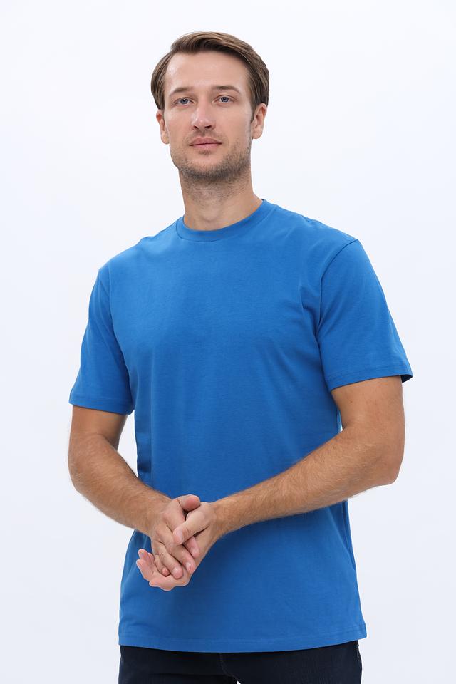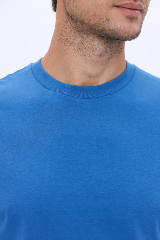 Цвет футболки — насыщенный голубой, который легко вписывается в любой образ. Уход за изделием не требует особых усилий, что делает ее практичной и удобной в использовании.