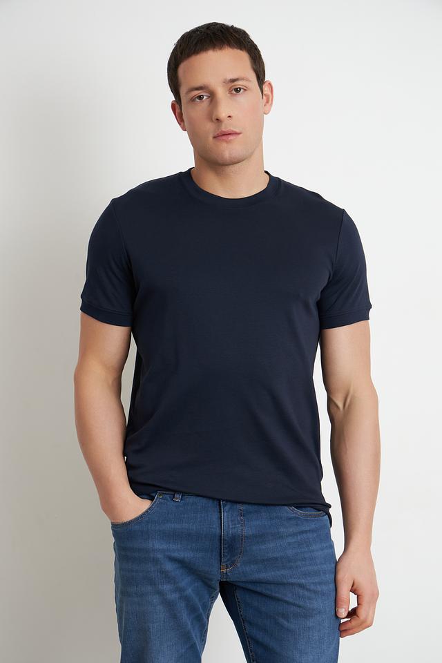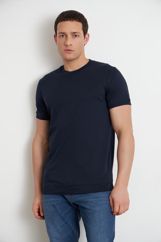 Состав футболки – 100% хлопок, что гарантирует приятные ощущения на коже и долговечность изделия. Темно-синий цвет делает эту футболку универсальной и подходящей для создания различных образов. Это отличный выбор для тех, кто ценит комфорт, качество и стиль.