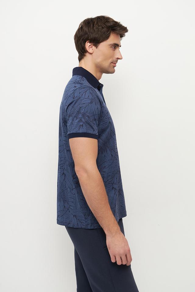 Мужское поло Ragman тёмно-синего цвета с ярким тропическим принтом. Изготовлено из 100% хлопка, обеспечивающего комфорт и воздухопроницаемость. Отличный выбор для создания стильного и непринужденного образа. Состав: хлопок 100%