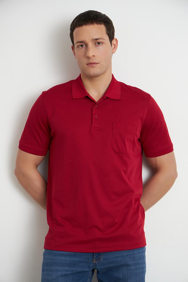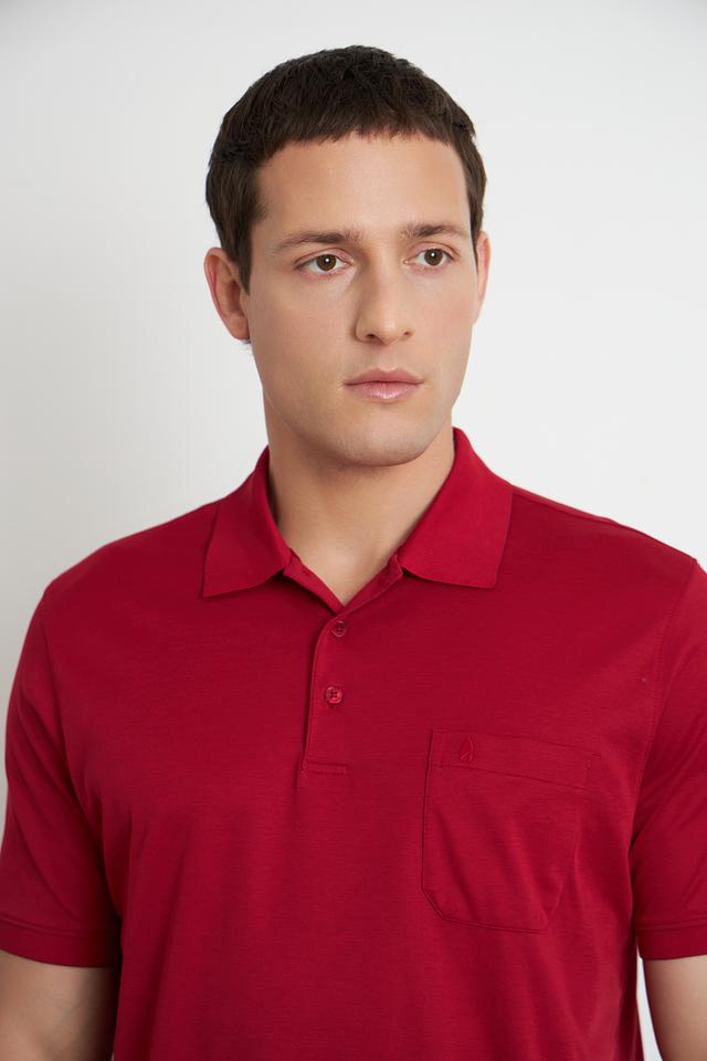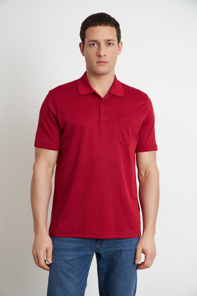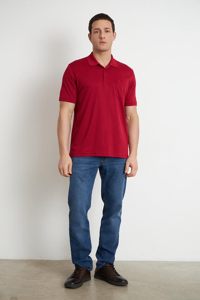 Поло имеет классический крой, который обеспечивает свободу движений и комфортную посадку по фигуре. Отличительной особенностью модели является нагрудный карман, добавляющий функциональности и стиля. Цвет поло – насыщенный бордовый, который легко сочетается с различными элементами одежды.