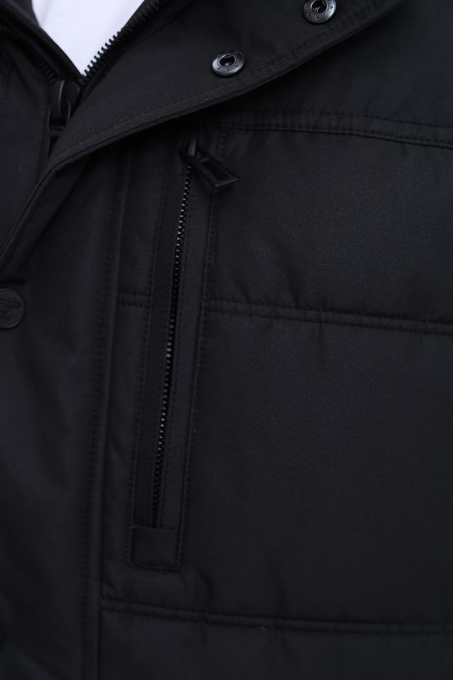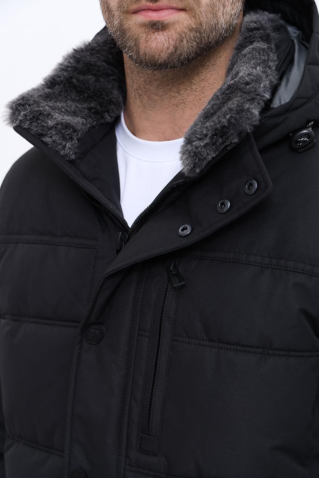 Модель имеет стеганую фактуру, которая придает ей современный вид. Капюшон отделан искусственным мехом, который защищает от холода и ветра. Куртка застегивается на молнию и кнопки, что обеспечивает надежную фиксацию. Накладные карманы с клапанами добавляют функциональности и стиля.