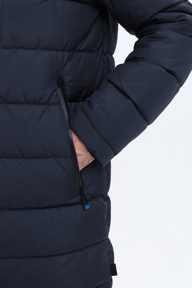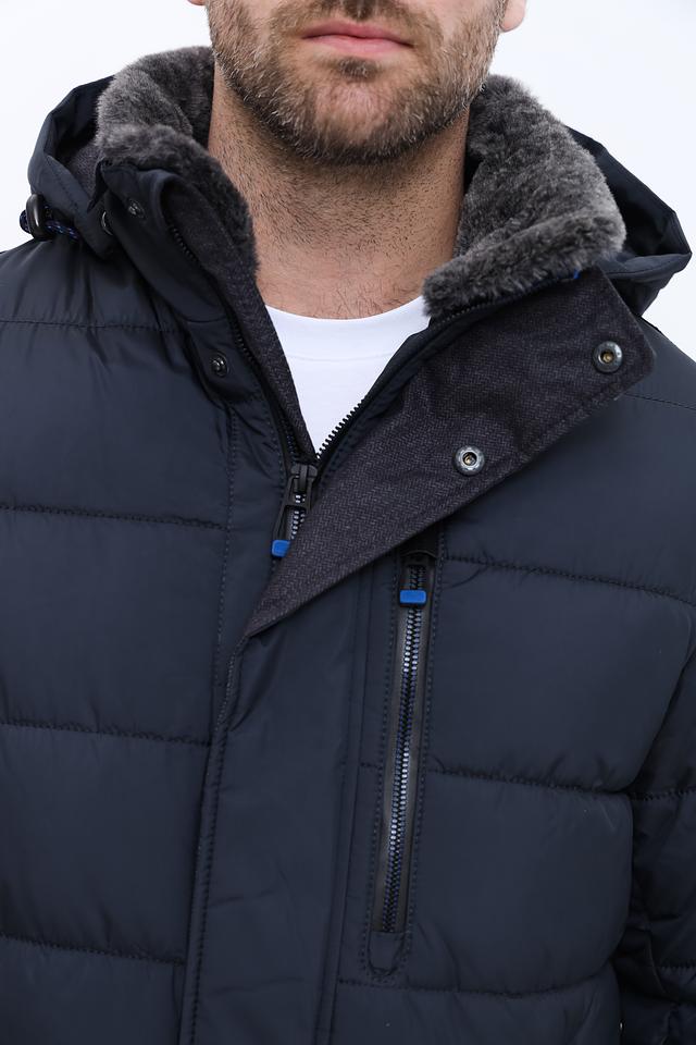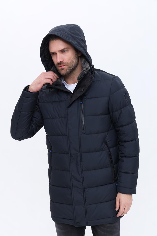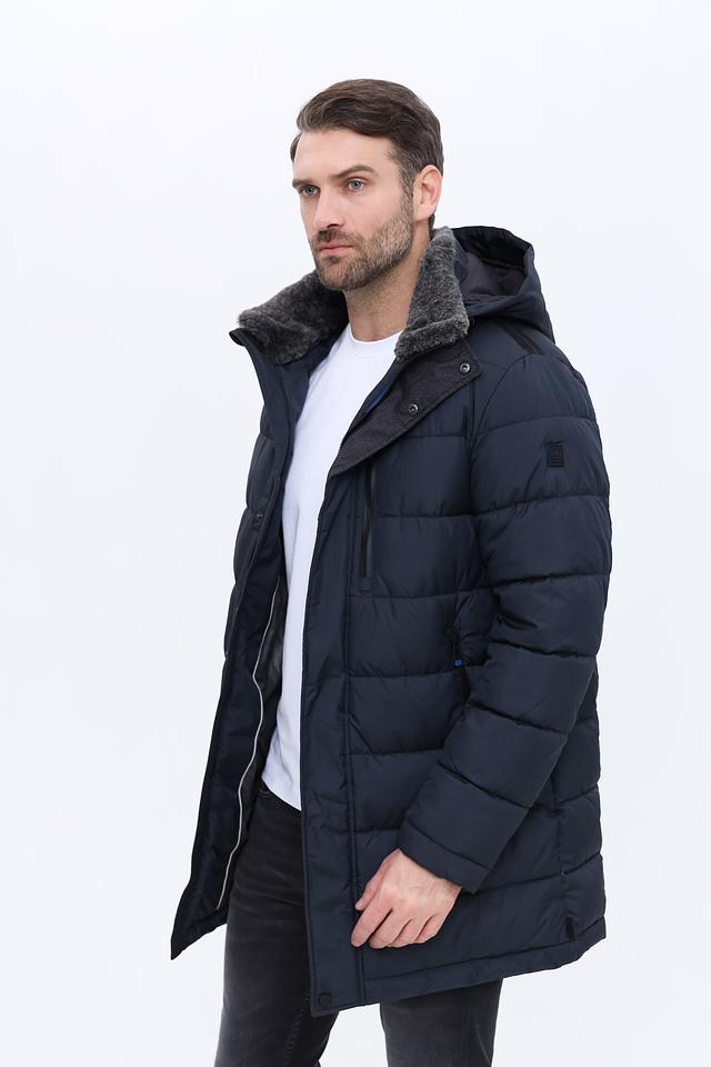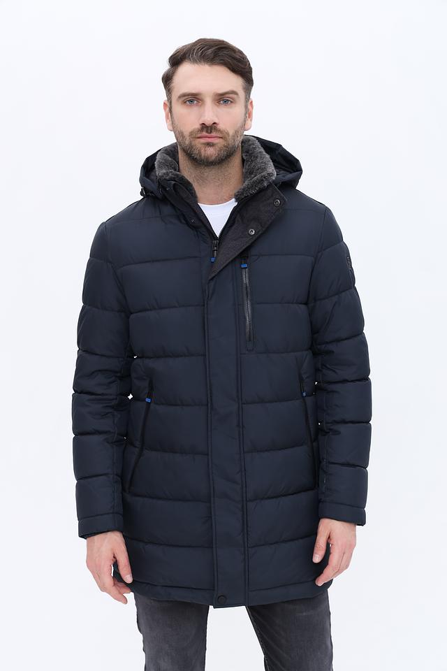 Мужское пальто Red Point тёмно-синего цвета – это стильное и практичное решение для холодной погоды. Модель выполнена в стеганом дизайне с удобным капюшоном и меховой отделкой, обеспечивающей дополнительное тепло и комфорт. Состав: полиэстер 100%