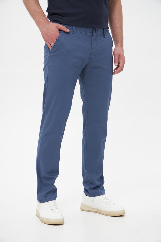 Мужские брюки чинос от бренда Red Point выполнены в спокойном синем цвете. Модель отличается классическим кроем, который подходит для большинства типов фигуры.
