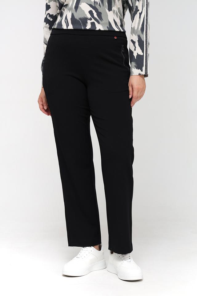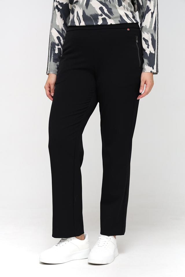 Чёрные брюки Relaxed by Toni из мягкой ткани с эластаном. Модель прямого кроя с удобной посадкой и функциональными карманами на молнии. Состав: полиэстер 63%, вискоза 32%, эластан 5%
