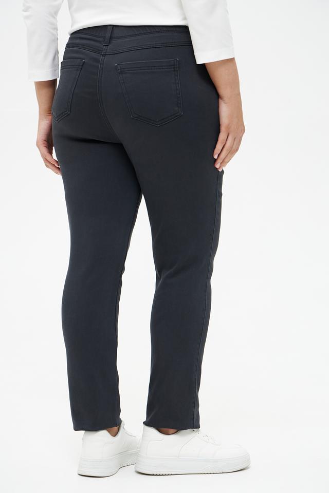 Джинсы имеют прямой крой и эластичный пояс, обеспечивающий комфортную посадку по фигуре. Ткань состоит из хлопка, полиэстера, вискозы и эластана, что придает джинсам мягкость, прочность и небольшую эластичность.