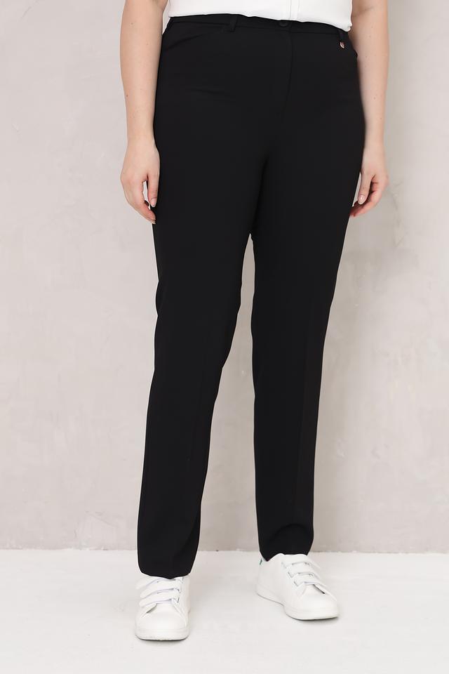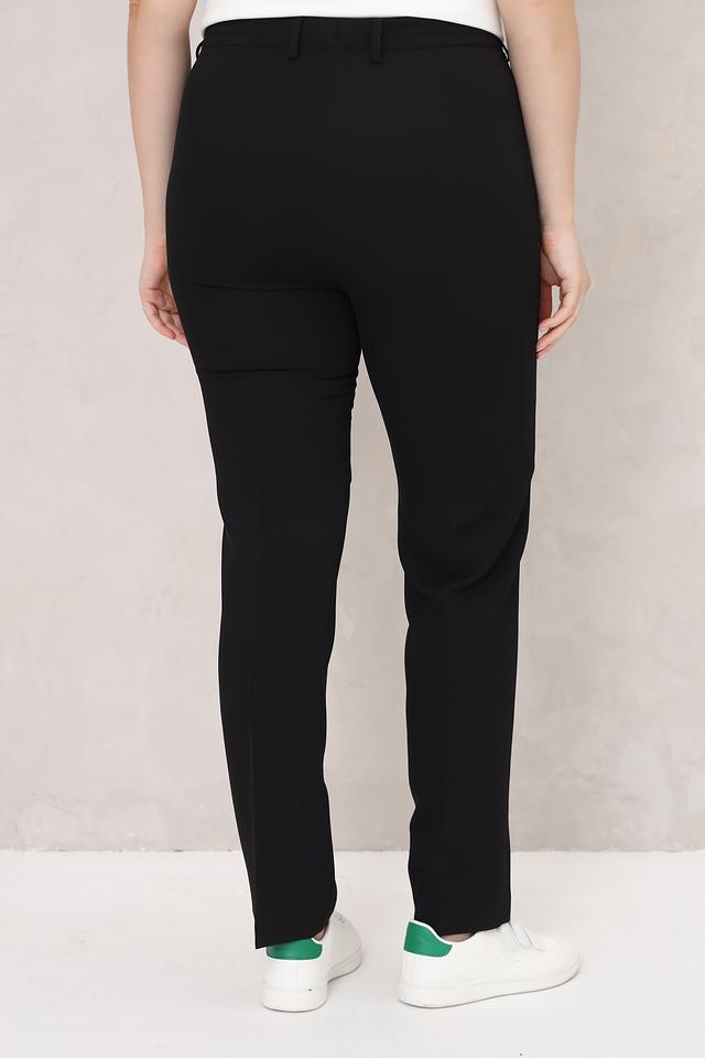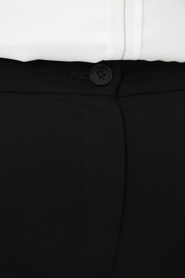 Застёжка на молнию и пуговицу обеспечивает надежную фиксацию. Брюки имеют аккуратные швы и минималистичный дизайн, что делает их универсальными и подходящими для различных стилей одежды. Чёрный цвет позволяет легко сочетать их с различными топами, блузками и обувью.