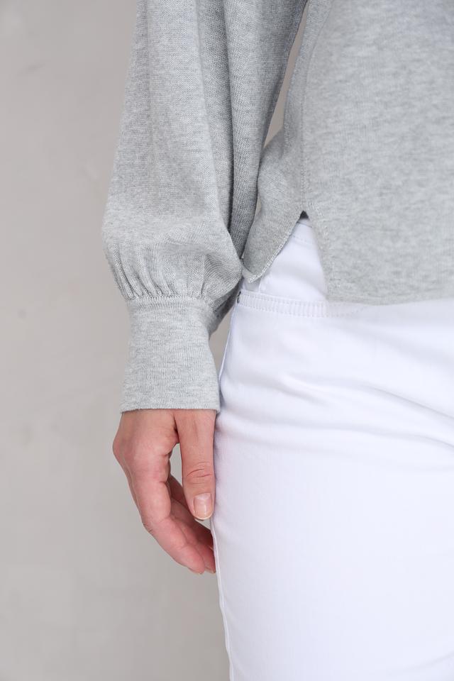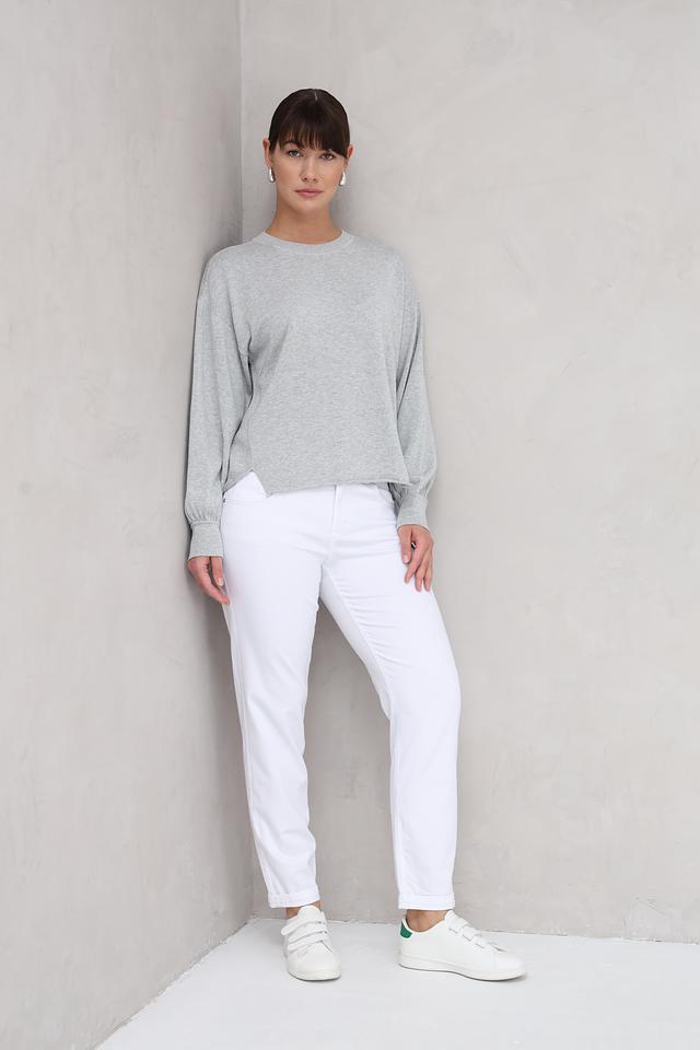 Пуловер имеет свободный крой, который не сковывает движений и позволяет создать расслабленный образ. Круглый вырез горловины и длинные рукава с манжетами добавляют модели классический вид. Меланжевая текстура придает изделию особый шарм и делает его универсальным дополнением к любому гардеробу.