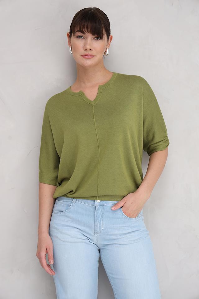 Рукава длиной 3/4 делают этот пуловер универсальным – он подойдет как для теплой погоды, так и для прохладных вечеров. Свободный крой обеспечивает комфорт и свободу движений.