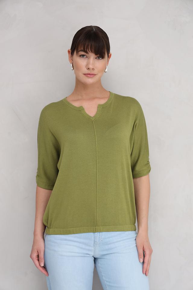 Пуловер Repeat оливковый с V-образным вырезом
