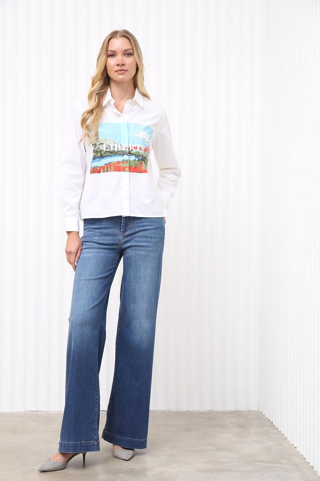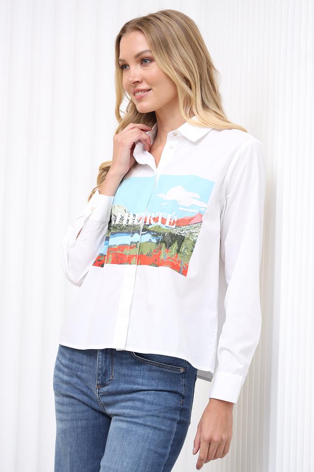 Белая рубашка Rich and Royal с ярким пейзажным принтом станет стильным дополнением к вашему гардеробу. Изготовлена из 100% хлопка, обеспечивая комфорт и воздухопроницаемость. Состав: хлопок 100%
