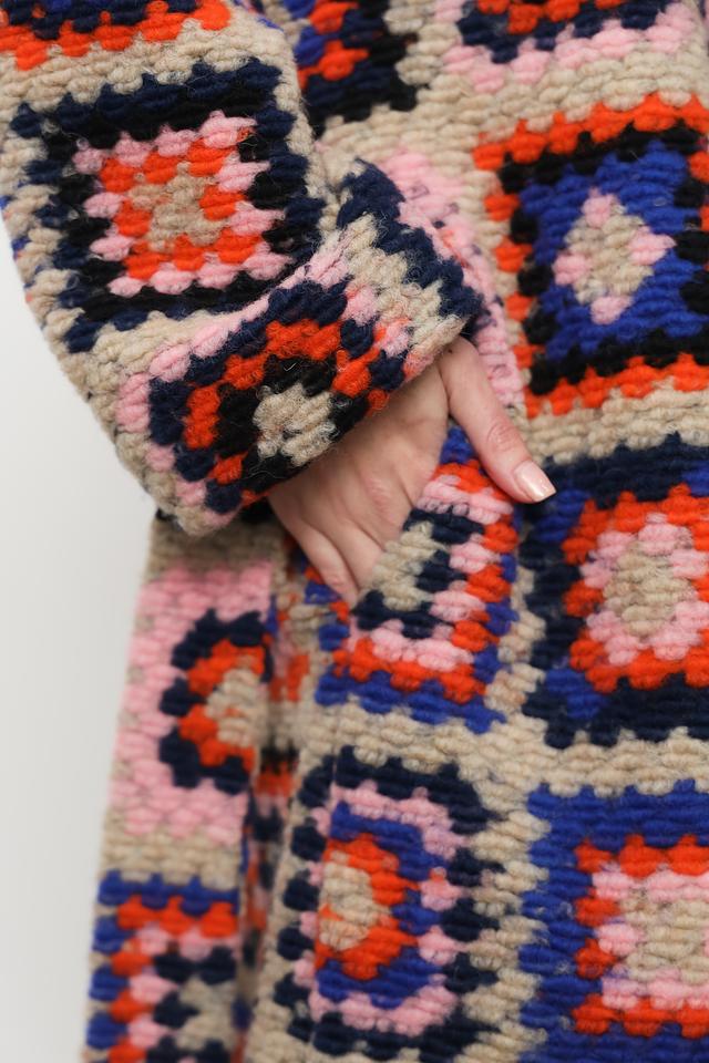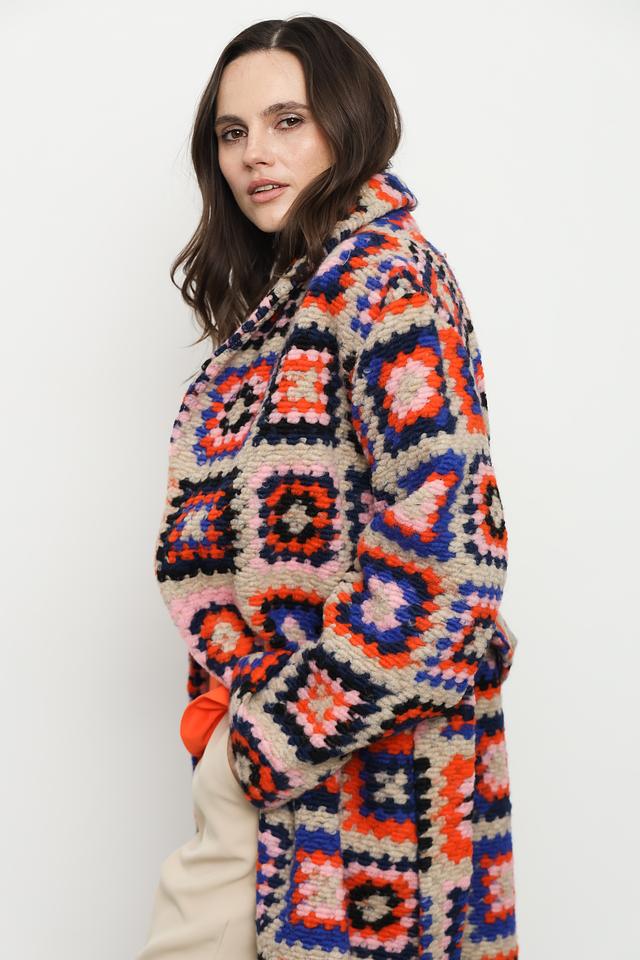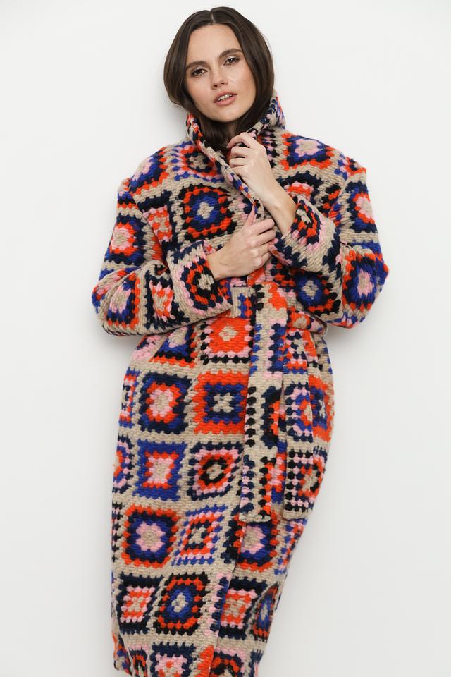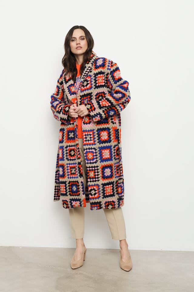 Это эффектное пальто от Rich and Royal станет ярким дополнением вашего гардероба. Модель выполнена в технике пэчворк, сочетая в себе различные оттенки и создавая уникальный геометрический узор.
