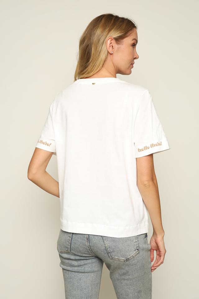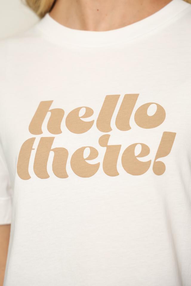 Белая футболка Rich and Royal с надписью "hello there!". Модель выполнена из 100% хлопка, имеет прямой крой и короткие рукава с надписью. Идеальный выбор для создания повседневного образа. Состав: хлопок 100%