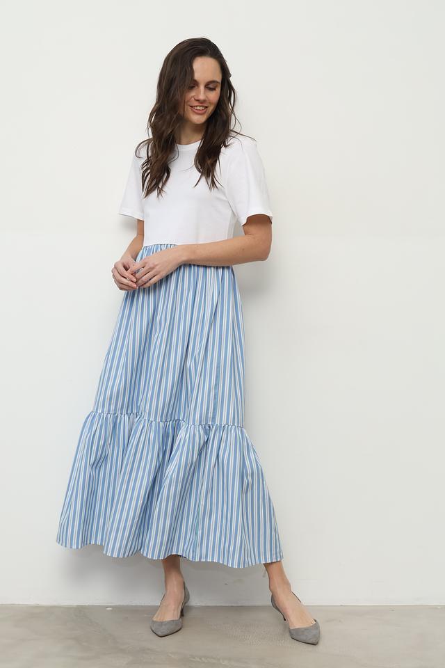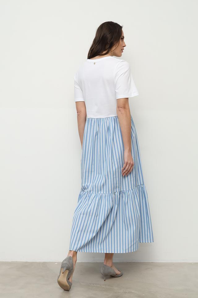 Платье Rich and Royal голубого цвета с белым верхом выполнено в полоску и имеет многоярусную юбку. Модель из 100% хлопка обеспечит комфорт и лёгкость в носке. Состав: хлопок 100%