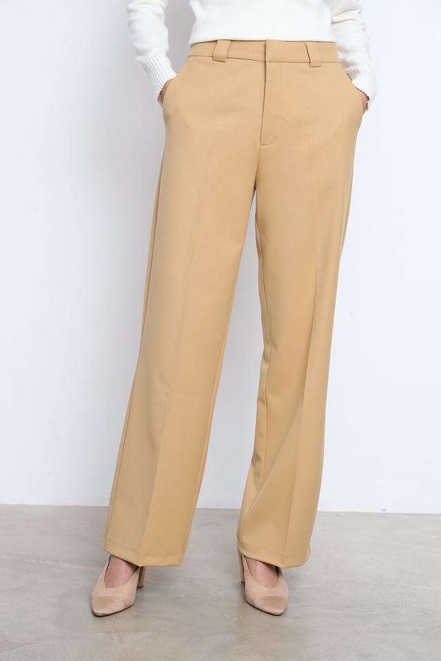 Брюки имеют прямой крой и высокую посадку, что обеспечивает комфортную посадку и визуально удлиняет ноги. Модель дополнена классическими карманами и поясом. Застежка – молния и пуговица. Ткань состоит из полиэстера, вискозы и эластана, что обеспечивает удобство в носке и сохранение формы.