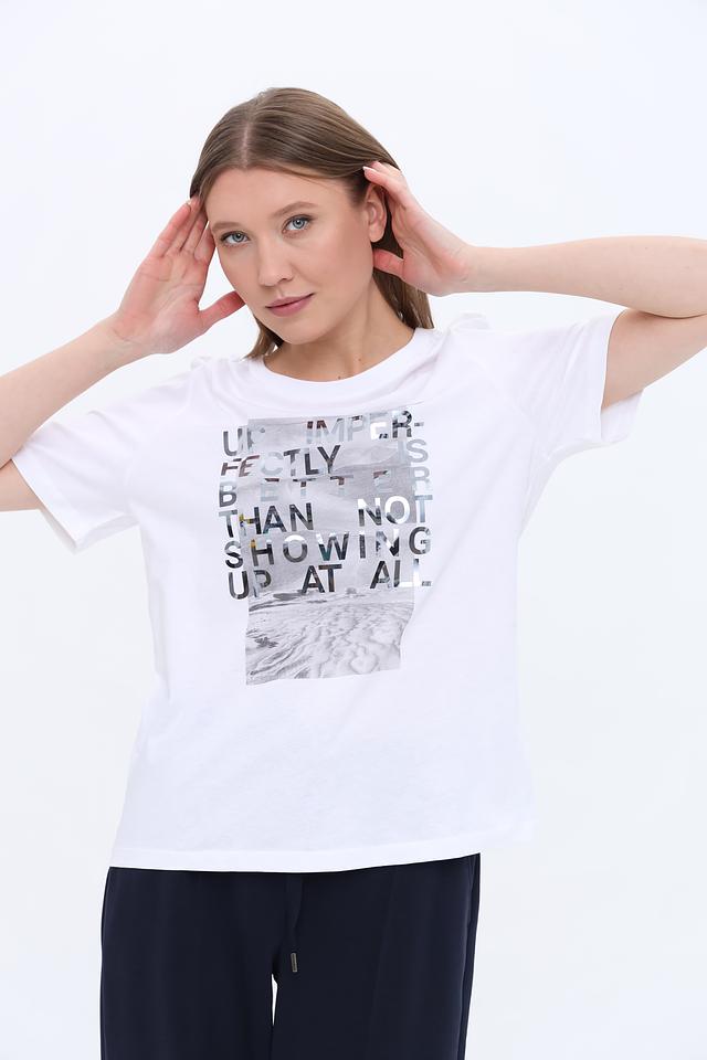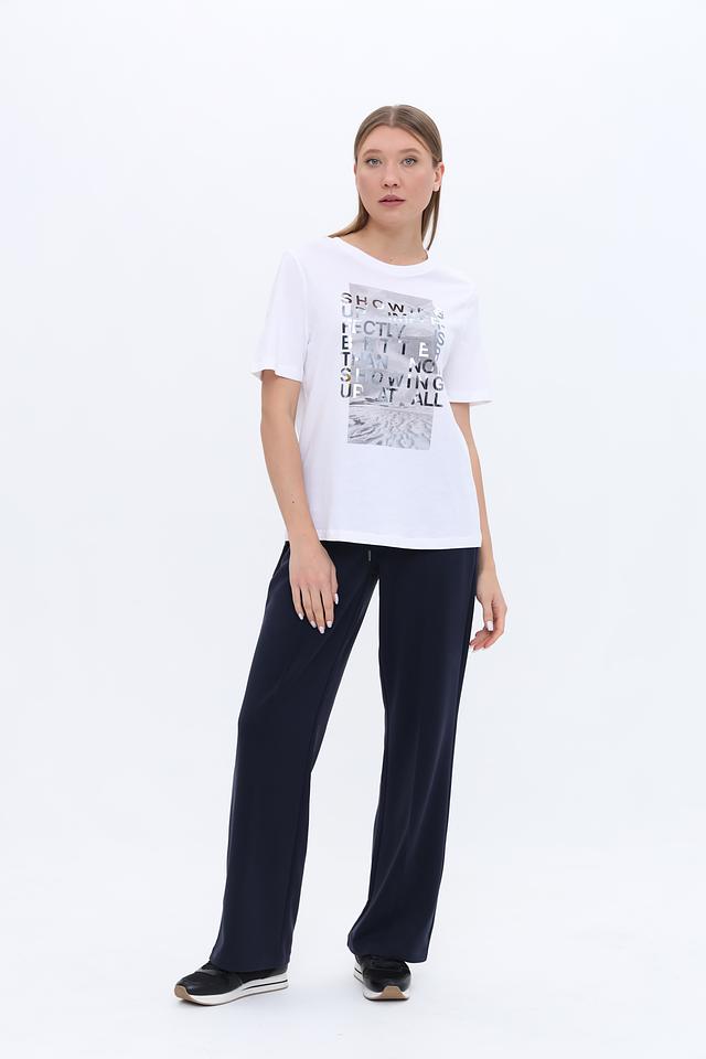 Футболка прекрасно сочетается с джинсами, брюками, шортами и юбками, позволяя создавать разнообразные образы. Она подойдет как для повседневной носки, так и для создания более интересных и стильных луков. Благодаря высокому качеству материалов и пошива, футболка прослужит вам долгое время.