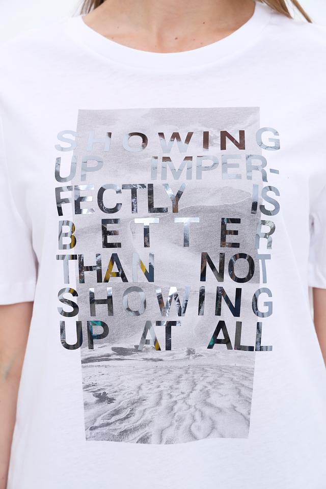Особенностью данной модели является яркий принт с абстрактным изображением и надписями. Прямой крой футболки позволяет ей хорошо сидеть на фигуре, не сковывая движений. Короткие рукава делают ее идеальным выбором для теплой погоды.