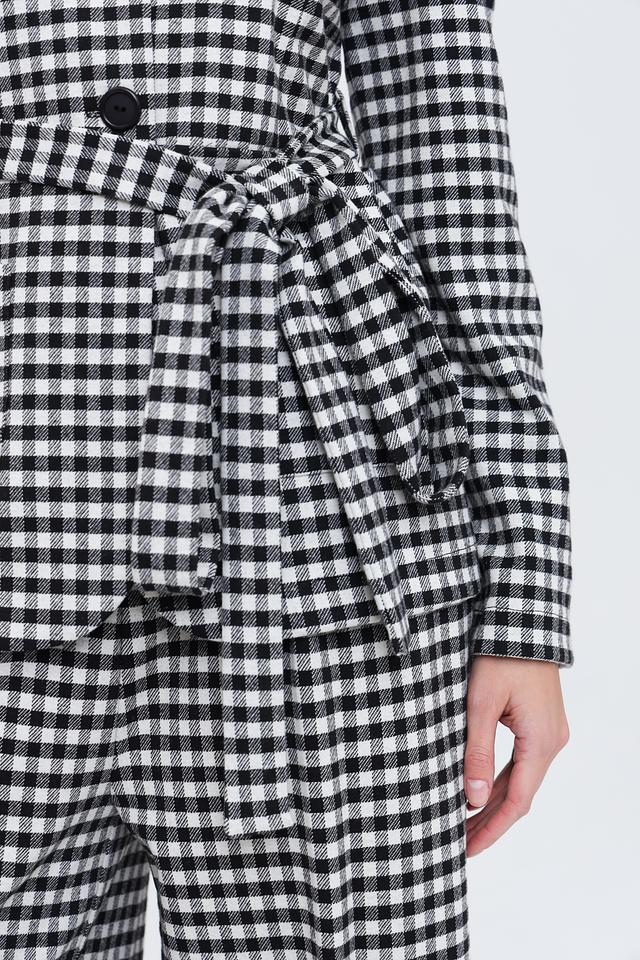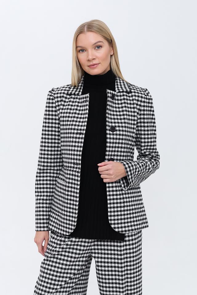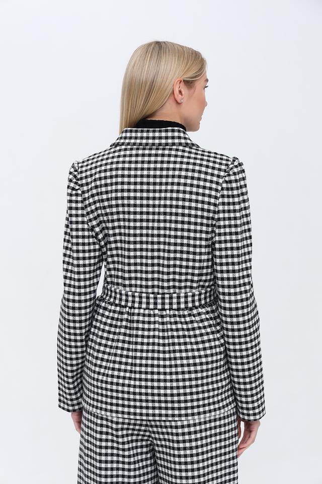 Этот жакет от Rich and Royal станет отличным выбором для создания элегантного и современного образа. Модель выполнена в классическом чёрно-белом цвете и украшена клетчатым принтом, который придает ей особый шарм.