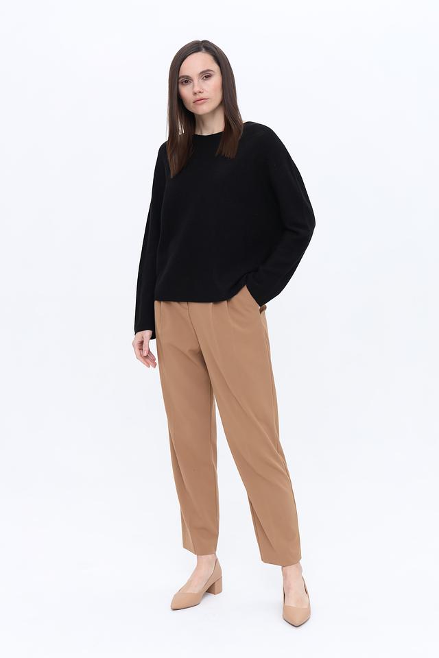 Пуловер имеет классический крой с круглым вырезом горловины и длинными рукавами. Его лаконичный дизайн позволяет легко сочетать его с различными предметами одежды – от джинсов и брюк до юбок и платьев.
