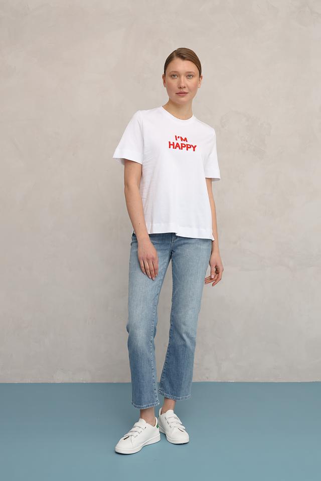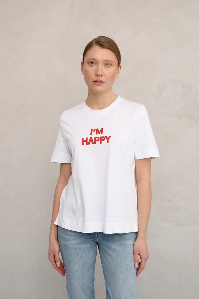 Эта стильная футболка от Rich and Royal выполнена в белом цвете и украшена эффектным красным принтом с надписью "I'M HAPPY". Она станет ярким акцентом в вашем повседневном гардеробе и подчеркнет вашу индивидуальность.