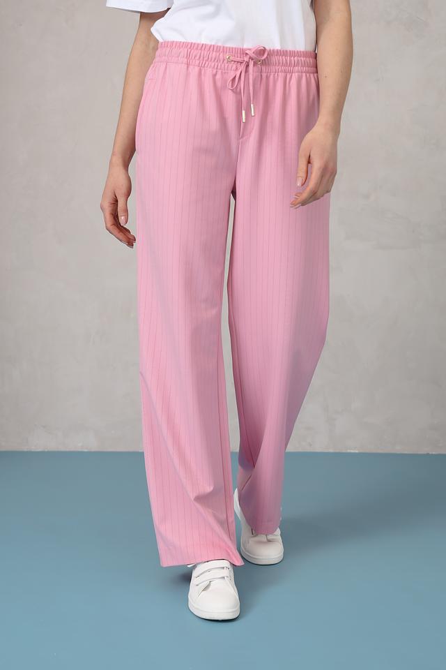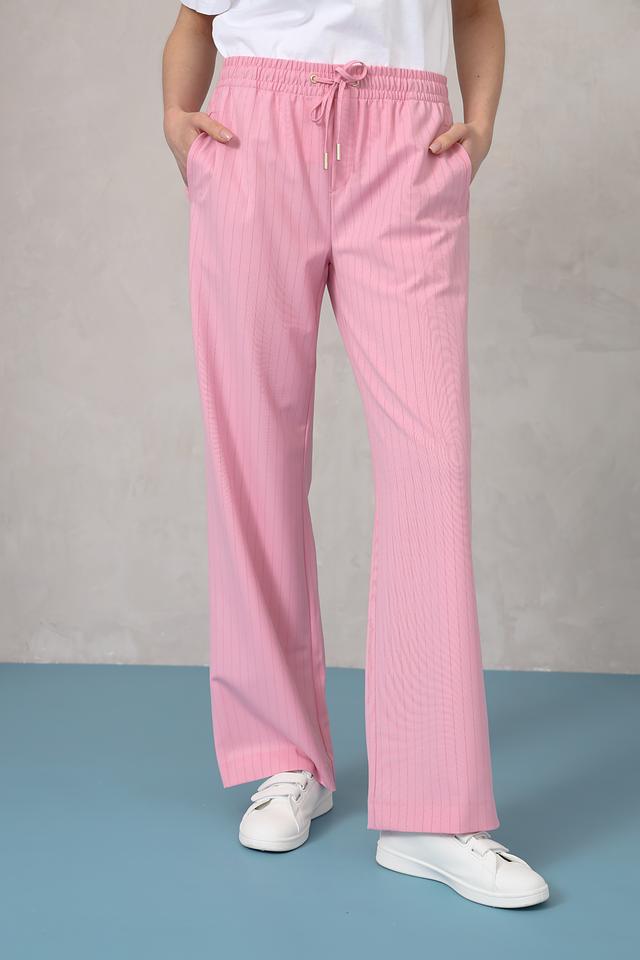 Розовые брюки палаццо от Rich and Royal – стильное и комфортное решение для создания модных образов. Модель выполнена из лёгкой ткани в вертикальную полоску и дополнена эластичным поясом с кулиской. Состав: полиэстер 68%, вискоза 29%, эластан 3%