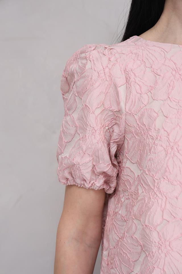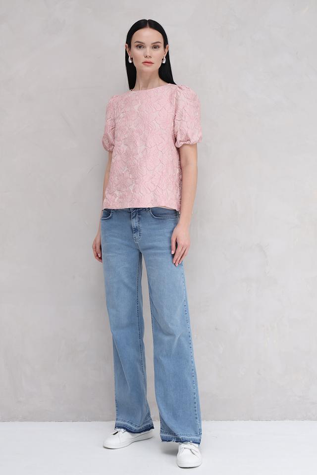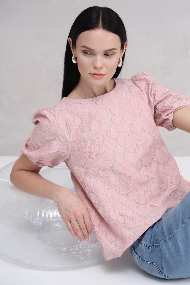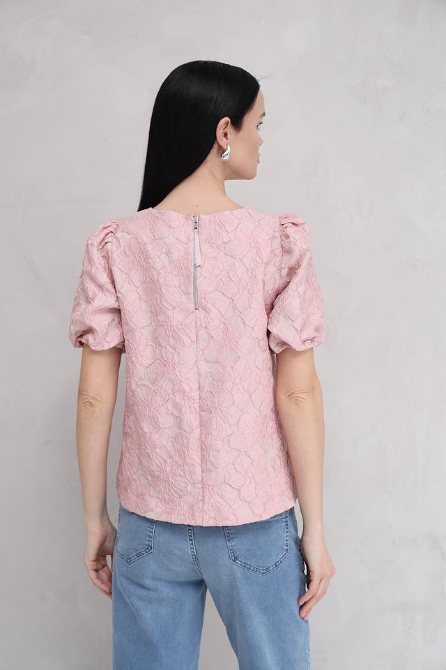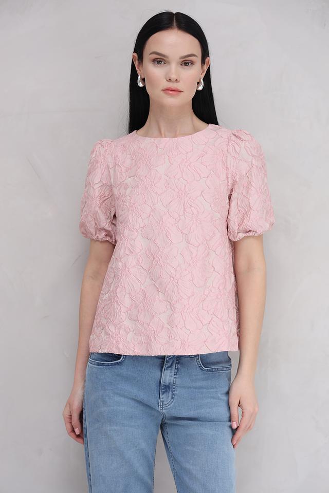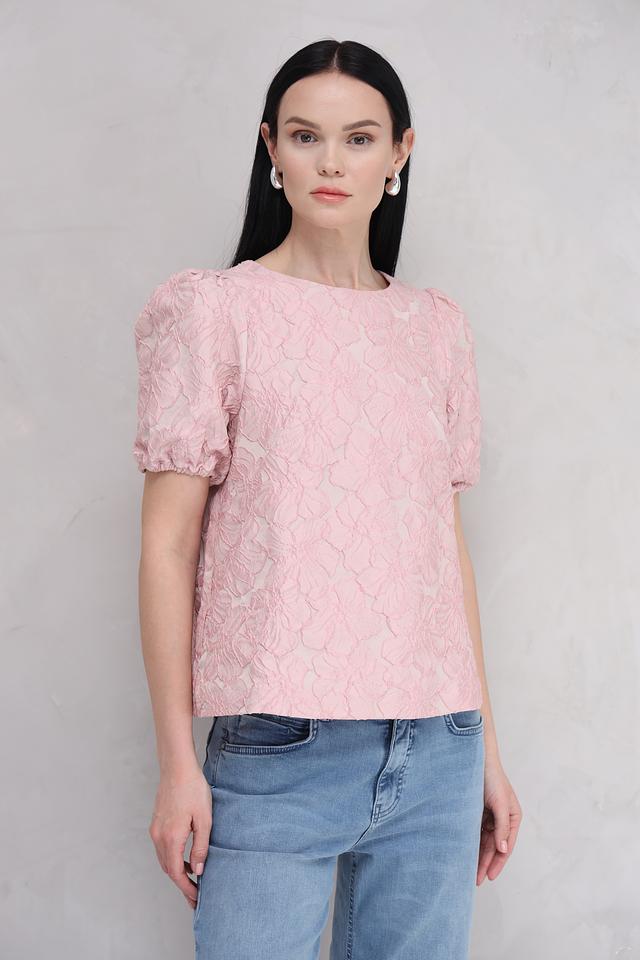 Эта изящная блуза от Rich and Royal выполнена в нежном розовом цвете и украшена текстурным кружевом. Модель имеет круглый вырез горловины и короткие рукава-фонарики, которые придают образу романтичность и лёгкость.
